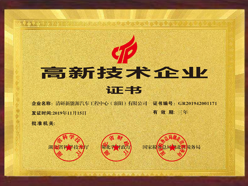 2020年5月8日,清研新能源公司正式取得“高新技術(shù)企業(yè)”證書,它不僅是清研新能源汽車工程中心(襄陽)有限公司成為知識(shí)密集、技術(shù)密集型企業(yè)的見證,更是公司“技術(shù)創(chuàng)新”路上的一塊重要里程碑。