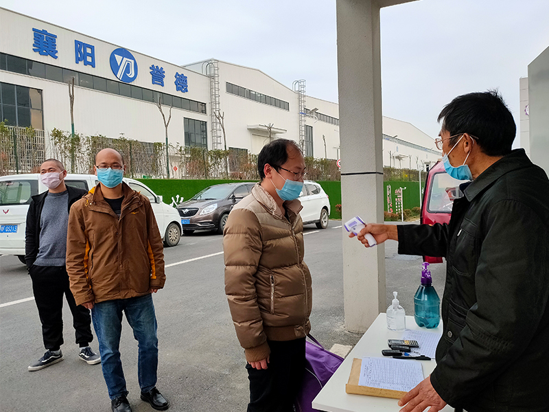 疫情期間,對(duì)所有進(jìn)出公司的車輛和人員實(shí)施嚴(yán)格管控,所有員工上班及途中必須佩戴口罩,進(jìn)入廠區(qū)前需接受門衛(wèi)和防控工作人員測(cè)溫登記及衛(wèi)生消毒處理后掃碼方可進(jìn)入,在等候排隊(duì)時(shí)人與人之間間隔1米以上,體溫超過(guò)37.3℃不允許進(jìn)入廠區(qū)。進(jìn)入廠區(qū)的車輛必須進(jìn)行全面噴灑消毒后方可進(jìn)入。